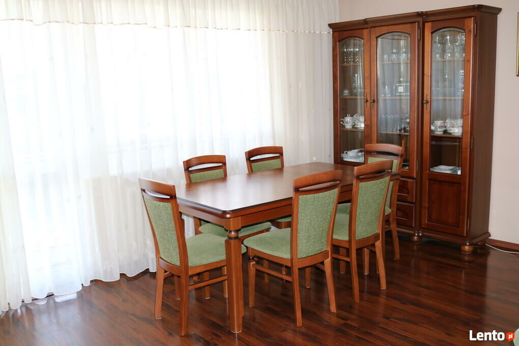 - Salon w pełni umeblowany (narożnik, komoda, kredens, szafka pod telewizor, TV, stół z 6 krzesłami)